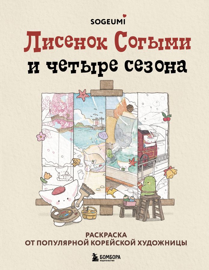 Корейский бестселлер от художницы SOGUMI. Невероятно милая и уютная раскраска, которая не только очарует своей нежностью, но и подарит чувство комфорта каждому, кто любит повседневные мелочи! Внутри более 60 иллюстраций о счастливой повседневной жизни пустынного лисенка Согыми и его друга кактуса Сосо, а также их цветные аналоги для вдохновения. Под одной обложкой корейская популярная художница SOGUMI создала целый мир, в котором живут ее очаровательные персонажи в разные времена года. SOGUMI — популярная корейская художница с аудиторией 100 тыс. подписчиков в соцсетях. Иллюстратор известна своими очаровательными мирами, в которых живет пельмешка* Согыми и его верный друг кактус Сосо. * поклонники этой вселенной называют лисенка Согыми «пельмешкой»