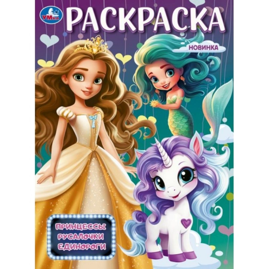 Раскраска «Принцессы, русалочки, единороги» ТМ «УМка» – отличный подарок для юных художников: - чёткий контур картинок для раскрашивания - короткие комментарии к рисункам на каждой странице - интересные и разнообразные иллюстрации - милые персонажи Эта увлекательная раскраска с очаровательными принцессами и волшебными существами непременно понравится вашему ребёнку. В ней он найдёт интересные картинки с чёткими контурами и сюжетными текстами к ним. Благодаря удобному формату раскраску можно взять с собой в путешествие. Игровые занятия с раскраской ТМ «УМка» способствуют развитию: - моторики - внимания - творческого мышления - усидчивости - визуального восприятия Объём: 16 стр. Формат: 214 х 290 мм. Материал: офсетная бумага. Рекомендовано детям старшего дошкольного возраста.
