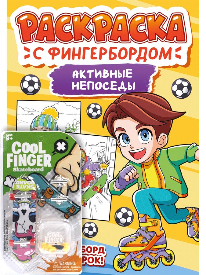 Перед вами серия "Раскраска с фингербордом" для активных детей. Эта раскраска состоит из 16 современных и стильных иллюстраций, которые вдохновят вашего ребенка на творчество и увлекут в мир красок и фантазии. Но это ещё не всё. Приятный бонус для маленьких художников - в каждую раскраску вложен фингерборд! С помощью этой забавной игрушки ребёнок сможет развивать ловкость рук и креативные навыки, а также весело проводить время с друзьями. Благодаря фингерборду для скуки не найдётся места. Наши раскраски с фингербордом - это прекрасный подарок на любой праздник!
