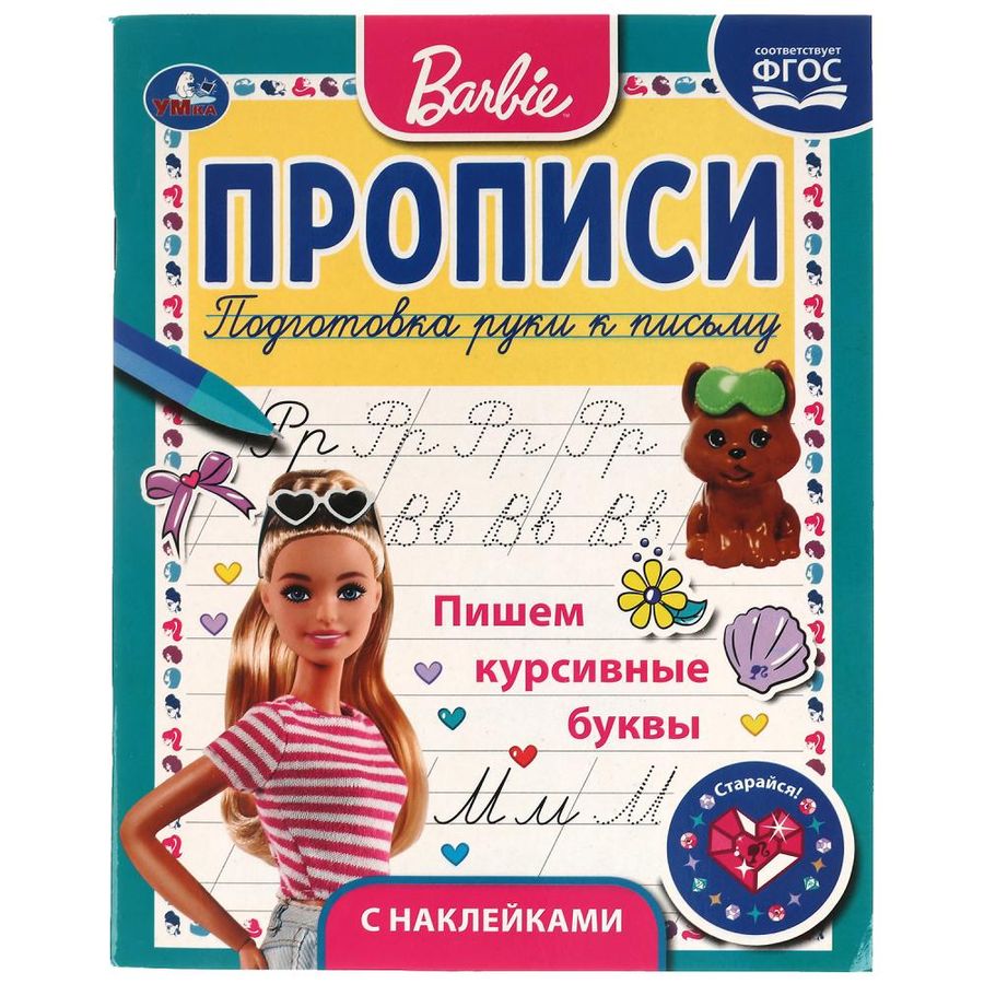 Прописи c поощрительными наклейками «Барби. Пишем курсивные буквы» ТМ «УМка» непременно понравятся маленьким любознайкам: - подготовка руки к письму - поощрительные наклейки - картинки для раскрашивания - любимые персонажи - учимся писать курсивные буквы - соответствует ФГОС - удобный формат Данная книга с прописями и иллюстрациями-раскрасками с изображением красавицы куклы Барби облегчит процесс обучения ребёнка, поможет ему потренировать руку в написании курсивных букв. А поддерживать интерес к учёбе и хвалить за успехи помогут поощрительные наклейки. Занятия с прописями ТМ «УМка» способствуют развитию: - мелкой моторики рук - памяти - внимания - творческого мышления - усидчивости