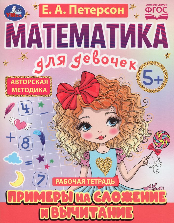 В данной рабочей тетради девочки и их родители найдут увлекательные задания по математике от Е.А.Петерсон. Собранные в ней упражнения научат ребенка потренируют ребенка в решении примеров на сложение и вычитание в пределах первого десятка, помогут развить усидчивость, внимательность и сосредоточенность, а также отточить навыки письма. Занимайтесь по 10-15 минут в день. Учитесь с удовольствием!