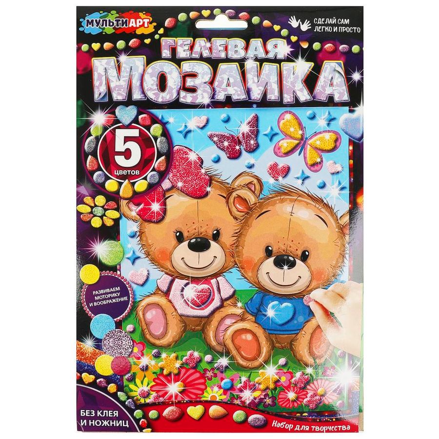 Набор для творчества - гелевая мозаика «Мишки» ТМ «Мульти Арт» - отличный подарок для вашего ребёнка, который будет способствовать развитию его творческих способностей. Особенности и комплектация: - основа для аппликации - 5 цветов - всё необходимое в комплекте - без клея и ножниц С помощью этого набора юный художник сможет самостоятельно создать необычную аппликацию с изображением милых медвежат. Готовую поделку можно подарить близким или использовать для украшения интерьера. Творческие занятия с набором ТМ «Мульти Арт» развивают: - внимание и усидчивость - творческое мышление - сенсорное и цветовое восприятие - моторику рук - фантазию и воображение Размер: 17 х 23 см. Материал: картон + пластмасса. Рекомендовано детям от 3-х лет.