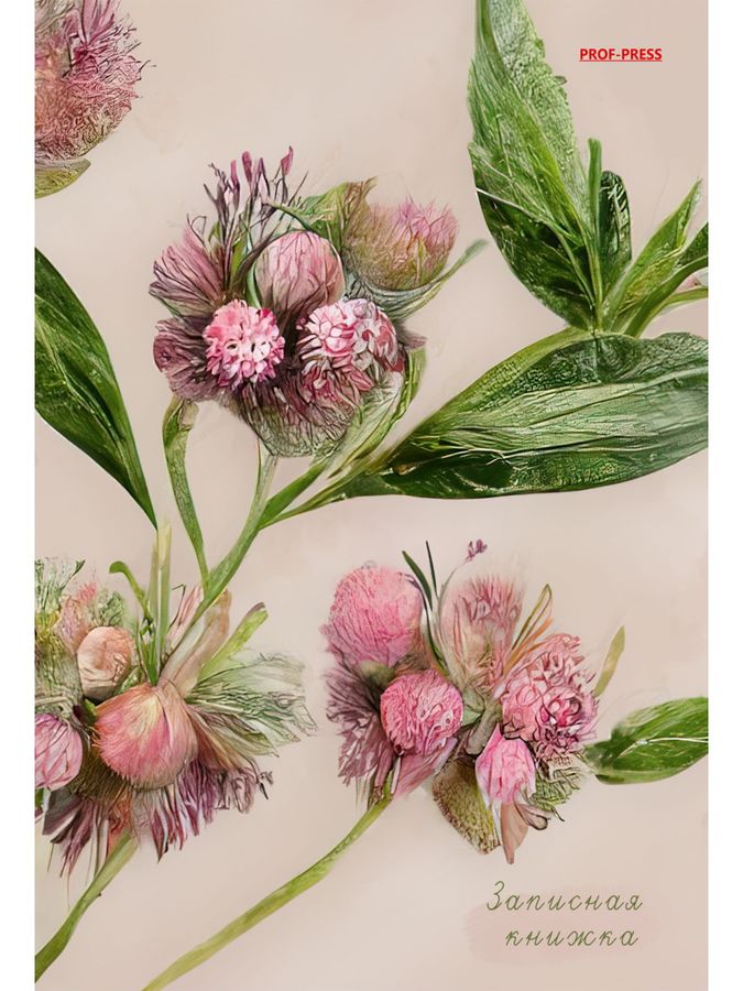 Книжка записная А5 80л клетка гребень тв.обл. Розовые цветы ПРОФ-ПРЕСС 80-6752