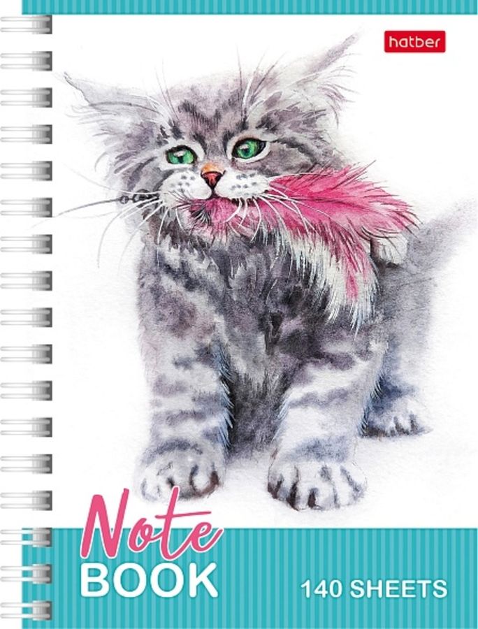 Книжка записная А6 140л клетка гребень Котики бывают разными ассорти HATBER 140ЗК6В1гр