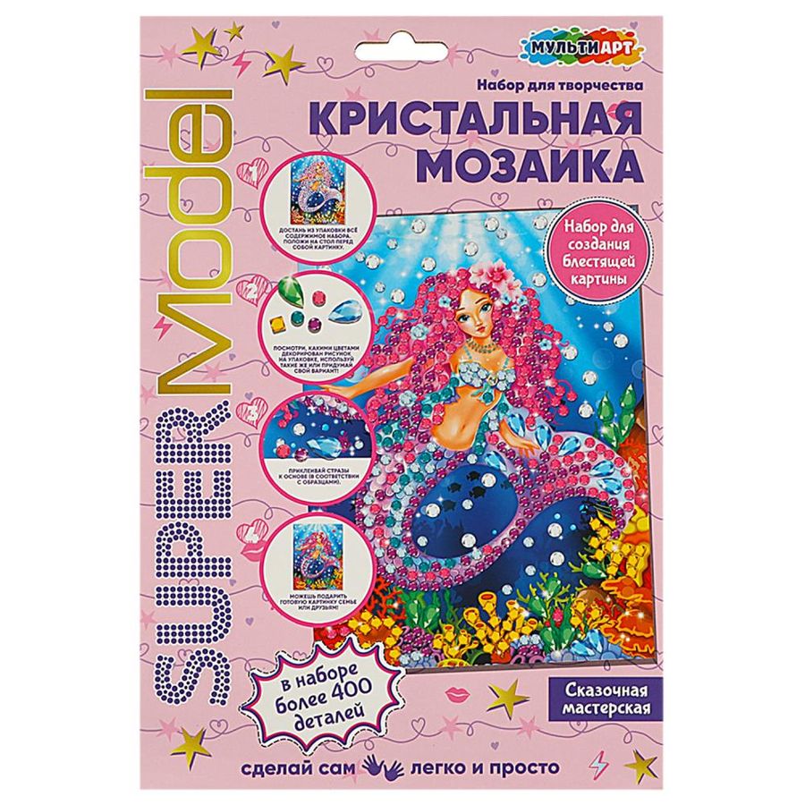 Набор для творчества – кристальная мозаика «СуперМодель. Русалка» ТМ «Мульти Арт» - отличный подарок для ребёнка, который будет способствовать развитию его творческих способностей. Особенности и комплектация: - более 400 деталей - 3 вида страз: капля, круг, квадрат - без клея и ножниц - понятная инструкция При помощи этого набора маленькая художница сможет создать блестящую картину с изображением очаровательной русалки, декорированную сверкающими стразами. Готовая поделка станет отличным вариантом для подарка близким или для украшения интерьера детской комнаты. Творческие занятия с кристальной мозаикой ТМ «Мульти Арт» обладают успокаивающим действием, а также развивают: - творческое мышление - цветовое восприятие - усидчивость - внимание - аккуратность Размер: 17 х 23 см. Материал: картон + пластмасса. Рекомендовано детям от 3-х лет.