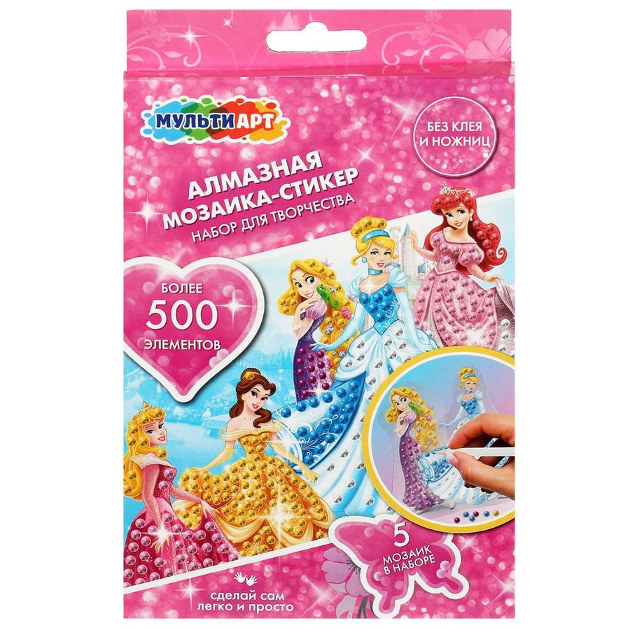 Набор для детского творчества – алмазная мозаика-стикер «Принцессы» ТМ «Мульти Арт» - отличный подарок для ребёнка, который будет способствовать развитию его творческих способностей. Особенности и комплектация: - более 500 деталей - 5 мозаик в наборе - комплект страз - ёмкость для страз - специальный инструмент - без клея и ножниц - инструкция При помощи этого набора маленький художник сможет создать красивые, декорированные сверкающими стразами, картинки-мозаики с изображением очаровательных принцесс. Яркую блестящую поделку можно подарить близким или использовать для украшения комнаты. Творческие занятия с алмазной мозаикой ТМ «Мульти Арт» обладают успокаивающим действием, а также развивают: - творческое мышление - цветовое восприятие - усидчивость - внимание - аккуратность Размер упаковки: 18 x 13 x 2 см. Материал: картон + пластмасса. Рекомендовано детям от 3-х лет.
