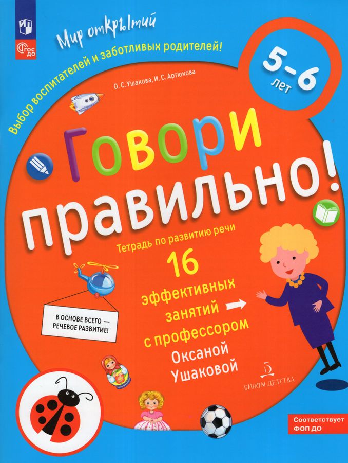 Тетрадь по развитию речи позволяет педагогу организовать системные и эффективные занятия в подготовительной группе детского сада. 16 занятий в тетрадке — это 16 игр, которые понравятся не только воспитателям, но и родителям. Все занятия построены на материале детских сказок, стихов, загадок. Яркие картинки, пиктограммы и специальные пояснения для взрослых написаны легко, без использования научной терминологии. Задания направлены на обогащение лексики малышей, решают задачу высвобождения речи, закладывают основы вербального общения. Выпущено 4 тетради на каждую возрастную группу. Тетрадь предназначена для занятий в детском саду и дома с детьми 5–6 лет. Выходит в комплекте с конспектами занятий.