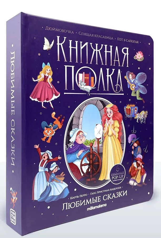 В серию «Книжная полка» вошли самые любимые произведения и детей, и взрослых. Сборник «Любимые сказки» — это знаменитые истории любимых сказочников — Шарля Перро и Ганса Христиана Андерсена — "Дюймовочка", "Спящая красавица", "Кот в сапогах". Сказки о доброй малютке Дюймовочке, о прекрасной принцессе в зарослях шиповника, о находчивом Коте и удачливом сыне мельника. Окунитесь в неповторимый мир знаменитых сказок — читайте книги из серии «Книжная полка» от торговой марки Malamalama.
