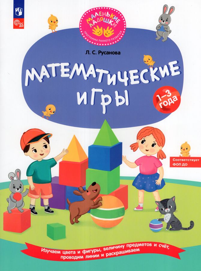 В развивающей тетради представлены игровые задания для детей по формированию элементарных математических представлений в соответствии с комплексной образовательной программой дошкольного образования для детей раннего возраста: от двух месяцев до трёх лет — «Маленькие ладошки». Материал, представленный в тетради, разделён тематически. В каждой теме ребёнку предлагается выполнить интересные задания по формированию понятий о цвете, форме и величине предметов, счёте, временных и пространственных представлений.