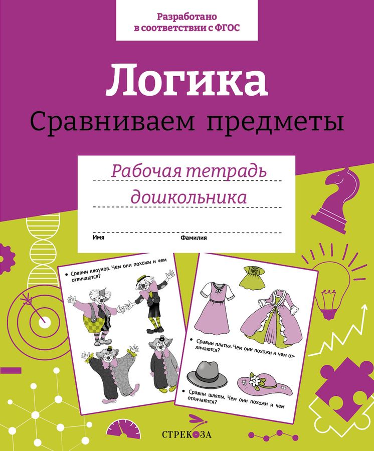 Рабочая тетрадь дошкольника “Логика. Сравниваем предметы” предназначена для развития у ребёнка навыка сравнивания предметов по размеру, ширине, высоте, форме и т.д. Для совместных занятий детей и родителей при подготовке к школе. Рабочая тетрадь для детей старшего дошкольного возраста. Разработано в соответствии с ФГОС Автор-составитель Е. Семакина Художники С. Адалян, С. Антонов, А. Артюх, А. Банных, О. Вовикова, А. Воробьев, Д. Гончарова, С. Долгов, М. Рюмина, Н. Ситников, Т. Ситникова, Т. Чижкова