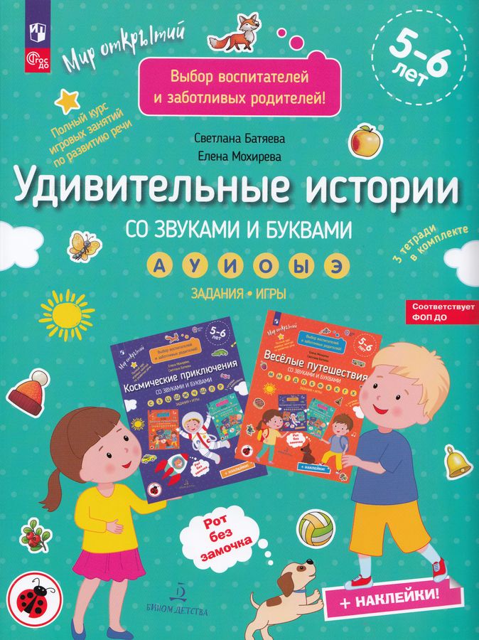 В рабочей тетради «Удивительные истории» познакомится с гласными звуками и буквами «а», «у», «и», «о», «ы», «э». Тетрадь соответствует требованиям ФГОС дошкольного образования, заниматься по ней можно как в детском саду, так и дома. Ребёнок сможет рисовать, раскрашивать, приклеивать наклейки. Авторы тетради Светлана Батяева и Елена Мохирева — практикующие логопеды, учитывающие все особенности речевого развития детей дошкольного возраста.