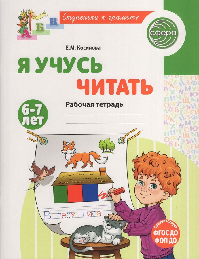 Рабочая тетрадь «Я учусь читать» для детей 6-7 лет поможет подготовить ребёнка к школе и предупредить нарушения чтения и письма на этапе школьного обучения. Дети постепенно осваивают операции звукового, слогового и языкового анализа и синтеза, знакомятся с характеристиками звуков. В игровой форме с помощью разнообразных упражнений автоматизируют навыки чтения слогов, слов и предложений, знакомятся с элементарными правилами письма. Со всеми сложными понятиями дети знакомятся постепенно на практическом опыте — с учётом возрастных особенностей дошкольного возраста. Каждое занятие в соответствии с ФГОС ДО способствует речевому, познавательному и социально-коммуникативному развитию. Издание адресовано воспитателям ДОО, педагогам дополнительного образования, родителям детей дошкольного возраста.