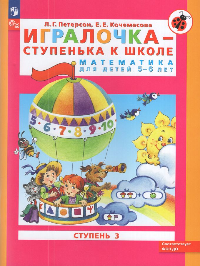 Пособие «Игралочка», ступень 3, предназначено для развития математических представлений детей 5-6 лет. Является составной частью комплекта «Игралочка» для детей 3-7 лет. В комплект также входят программа, методические рекомендации для педагогов со сценариями каждого занятия, демонстрационные и раздаточные материалы. Комплект «Игралочка» ориентирован на развитие у дошкольников мышления, творческих способностей, интереса к математике. Входит в комплект методических и развивающих пособий по дошкольному образованию «Мир открытий». Является начальным звеном непрерывного курса математики «Учусь учиться» от 3 до 15 лет. Его непосредственным продолжением служат учебники математики Л. Г. Петерсон для начальной и основной школы. Комплект «Игралочка» может использоваться в системе дошкольного образования и для индивидуальной работы с детьми.