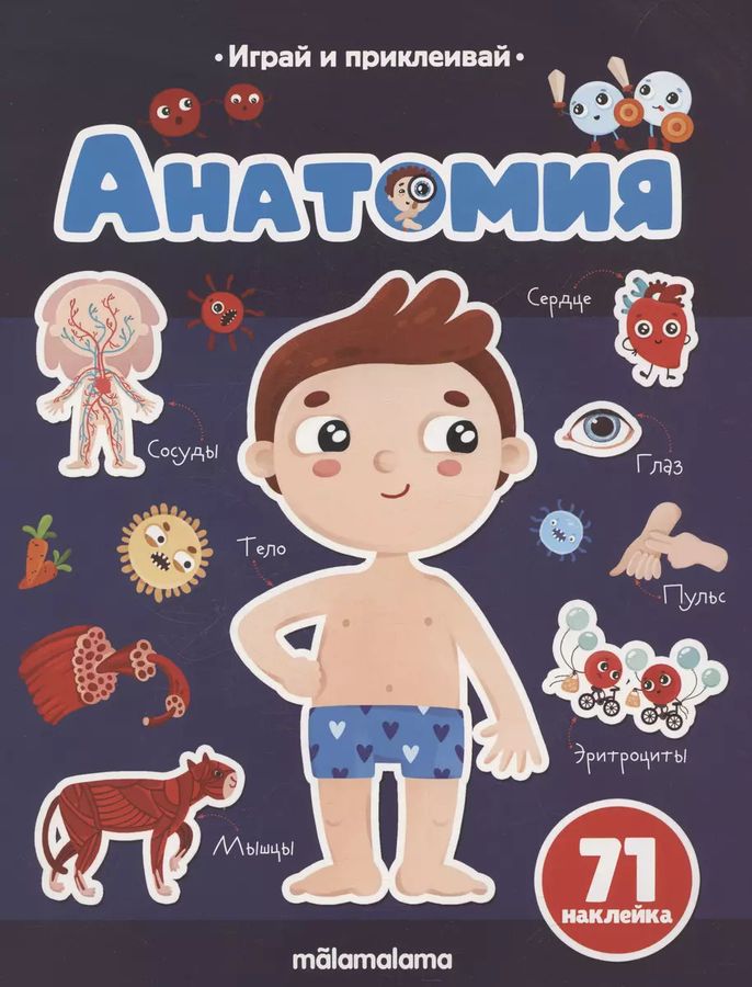 Книга "Анатомия" из серии "Играй и приклеивай" – развивающая книга для детей о строении человеческого тела. Внутри на каждом развороте маленький исследователь найдёт интересные факты о нашем организме. Яркие понятные иллюстрации отвечают на популярные вопросы юных читателей: для чего нужен скелет, как работают мышцы, зачем мы едим, почему нельзя не дышать, почему кровь красная. А наклейки в комплекте позволят не просто изучать книгу, но и активно дополнять её недостающими элементами, искать, выполнять задания. Задания составлены так, чтобы помогать малышу развивать мелкую моторику, внимательность, творческое мышление.