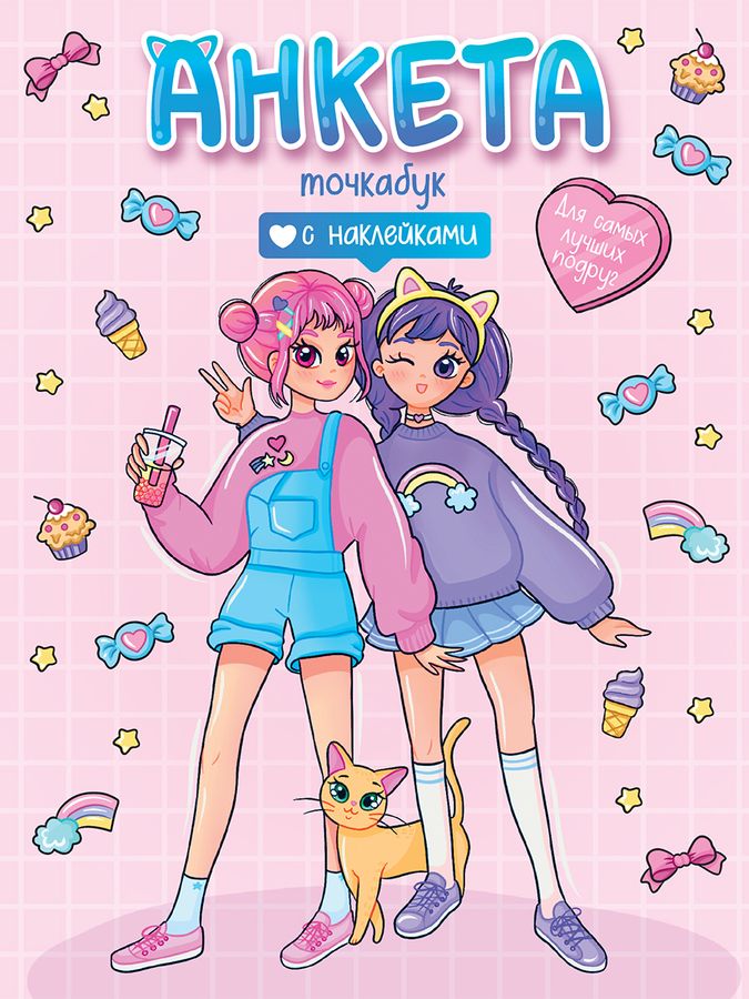 Анкета для девочек - это отличный подарок! Самые актуальные вопросы для подруг, интересные рубрики, тематические развороты и классные наклейки помогут весело провести время. А как интересно будет читать анкеты хозяйке после заполнения! Легкий способ узнать лучше своих подруг, подметить мелочи, которые раньше не замечал, или обнаружить общий интерес там, где и не думал его найти! Яркое стильное оформление, крутые обложки и удобный формат, который не займет много места в и без того тяжелом портфеле. "