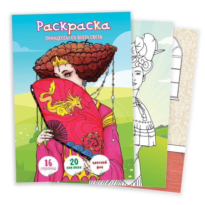 Раскраска А4 с наклейками, Формат: 290 × 210 мм , Материал обложки: мелованная бумага плотностью 170 г/кв.м. Материал содержания: мелованная бумага плотностью 80 г/кв.м. Печать: офсетная полноцветная. Вкладыш с наклейками: 240 × 295 мм. Материал вкладыша: самоклеящаяся бумага Muflon C80. 20 наклеек. Цветной фон