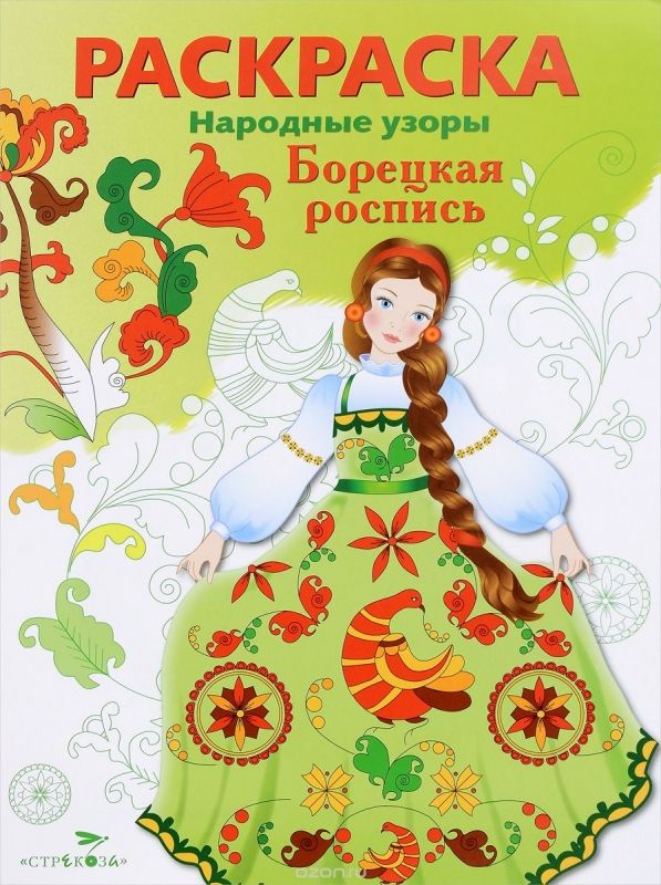 Раскраска из серии "Народные узоры". В данном выпуске представлена борецкая роспись. Для младшего школьного возраста.