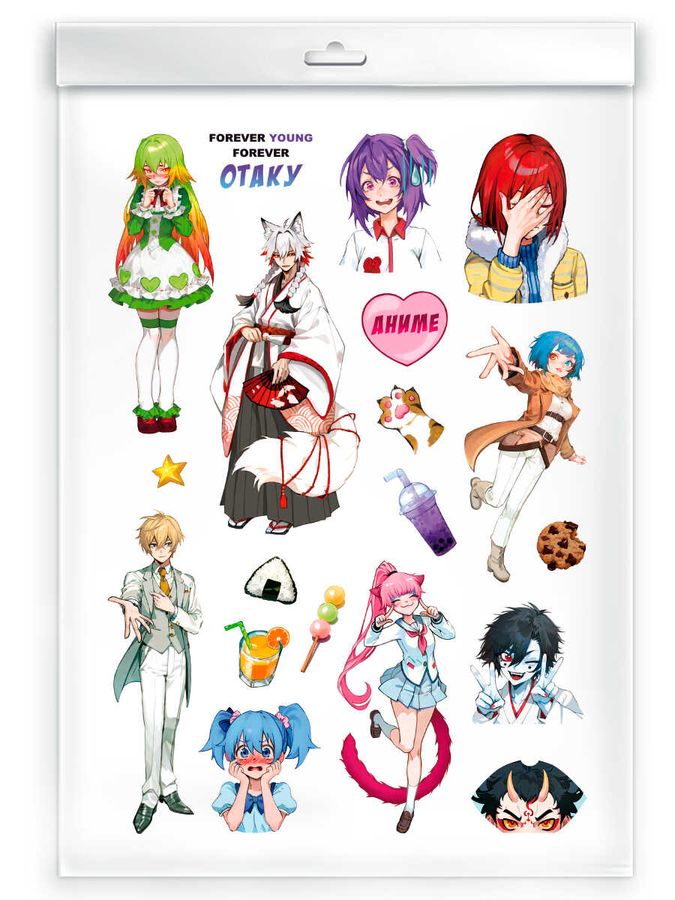 Набор наклеек для детей. Серия "Стикеры для фанатов" арт. 67576/ 50 ГЕРОИ КОСПЛЕЙ-АНИМЕ /148х210 мм, 1 л., полноцветная печать, обл - мелованная бумага 115 г/м², полноцветная печать, лист с наклейками/