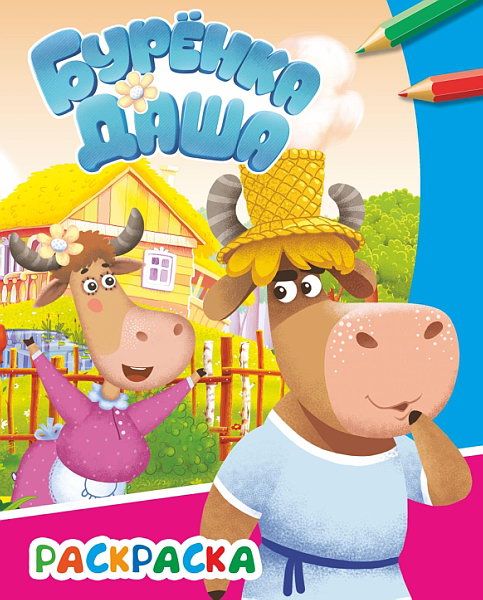 Раскраски с персонажами и кадрами из уникального мультипликационного караоке-проекта "Буренка Даша". А4 формат, 20х25 см, МЕЛОВАННАЯ обложка, 8 страниц, 8 картинок для раскрашивания.