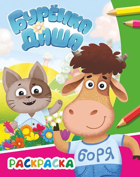 Раскраски с персонажами и кадрами из уникального мультипликационного караоке-проекта "Буренка Даша". А4 формат, 20х25 см, МЕЛОВАННАЯ обложка, 8 страниц, 8 картинок для раскрашивания.