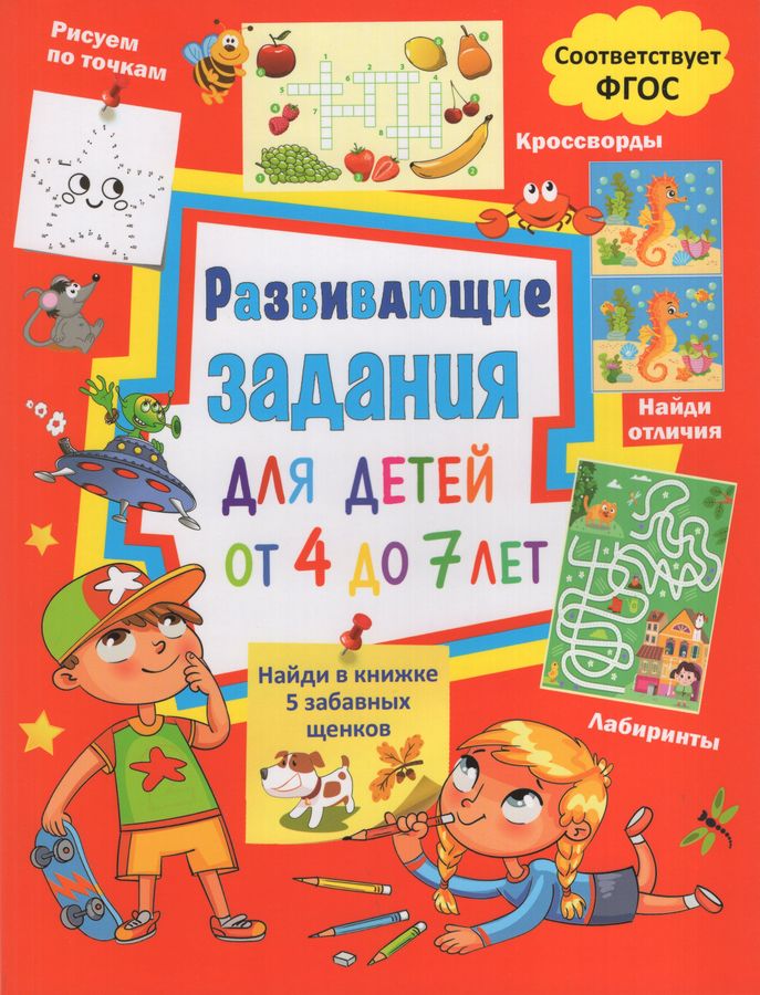 Уважаемые родители! В этой красочной книжке мы собрали специально для ваших детей задания на внимательность, весёлые раскраски, увлекательные лабиринты, интересные кроссворды. Их можно разгадывать самому или соревноваться с друзьями. А ответы мы спрятали в конце книги… Все эти несложные задания будут способствовать развитию у вашего ребёнка наблюдательности и мышления, научат самостоятельно принимать решения, что наверняка пригодится ему в школе. Желаем вашим детям весело и с пользой провести время, выполняя наши развивающие задания!