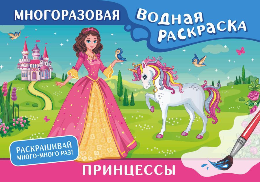 Многоразовая водная раскраска – уникальная раскраска, которая порадует вашего ребёнка! Она не требует использования красок, карандашей или фломастеров. Достаточно окунуть кисточку в воду, провести ей по белой части страницы, и как по волшебству на ней появятся спрятавшиеся герои! Когда картинка высохнет и снова станет белой, ее можно раскрашивать заново. Много-много раз! Настоящее волшебство! Просто? Да! Весело? Ещё бы! И полезно! Ребёнок учится концентрировать внимание, получает представление о форме и цвете, тренирует мелкую моторику и, конечно, радуется, глядя на свой рисунок. Картинка не может не получиться! Благодаря ярким и весёлым рисункам каждое задание станет маленькой игрой. Нужна только вода и кисточка!