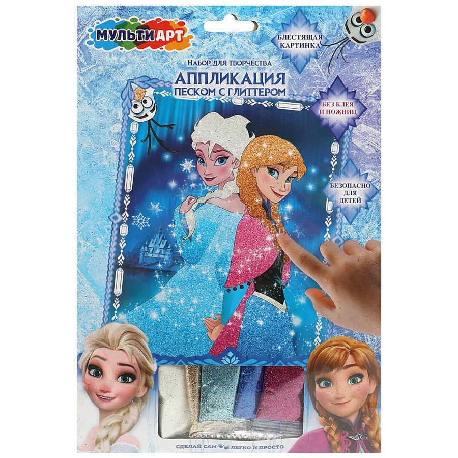 Набор для творчества - аппликация из песка с глиттером ТМ «Мульти Арт» - отличный подарок для ребёнка, который будет способствовать развитию его творческих способностей. Комплектация и особенности: - картонная основа для аппликации - 5 пакетиков цветного песка с блёстками - без клея и ножниц - нетоксично - безопасно для детей С помощью красочной основы и разноцветного блестящего песка маленькая художница сможет самостоятельно создать сверкающую аппликацию с изображением прекрасных принцесс. Готовую поделку можно подарить близким или использовать для украшения интерьера. Занятия с наборами для творчества ТМ «Мульти Арт» развивают: - внимание и усидчивость - творческое мышление - сенсорное и цветовое восприятие - моторику рук - воображение Размер основы: 17 х 23 см. Материал: картон + песок. Рекомендовано детям от 3-х лет.