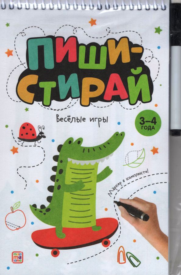 "Веселые игры" от Malamalama - занимательный игровой блокнот, который удобно брать с собой в дорогу! Внутри множество заданий, которые помогут ребенку развить фантазию, логическое мышление и мелкую моторику. А глянцевые странички позволяют стирать написанное и не бояться ошибок!