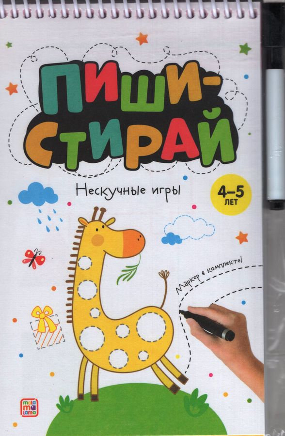 "Нескучные игры" от Malamalama - занимательный игровой блокнот, который удобно брать с собой в дорогу! Внутри множество заданий, которые помогут ребенку развить фантазию, логическое мышление и мелкую моторику. А глянцевые странички позволяют стирать написанное и не бояться ошибок!