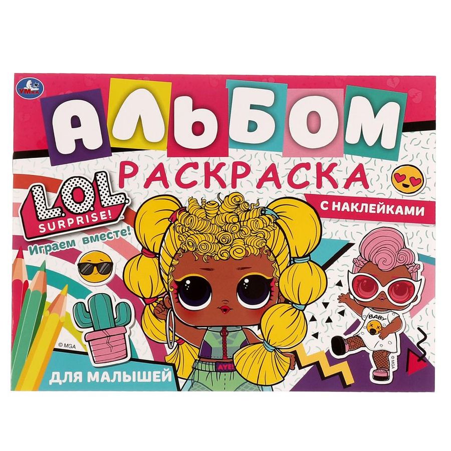 Альбом-раскраска с наклейками для малышей «ЛОЛ. Играем вместе!» ТМ «УМка» - отличный подарок для маленькой художницы: - красочные наклейки - тщательно прорисованные картинки для раскрашивания - разнообразные иллюстрации с любимыми персонажами - короткие комментарии к рисункам - альбомный формат Девочка будет рада повстречаться на страницах этой занимательной раскраски с любимыми куколками-модницами ЛОЛ. В данном альбоме она найдёт интересные картинки с чёткими контурами, короткие тексты к ним и яркие стикеры. Благодаря удобному формату альбом удобно брать с собой в дорогу. Игровые занятия с альбомом-раскраской ТМ «УМка» подготавливают руку к письму и способствуют развитию: - моторики - внимательности - творческого мышления - усидчивости - фантазии Объём: 16 стр. Формат: 285 х 215 мм. Материал: офсетная бумага + самоклеящаяся бумага. Рекомендовано детям старшего дошкольного возраста.