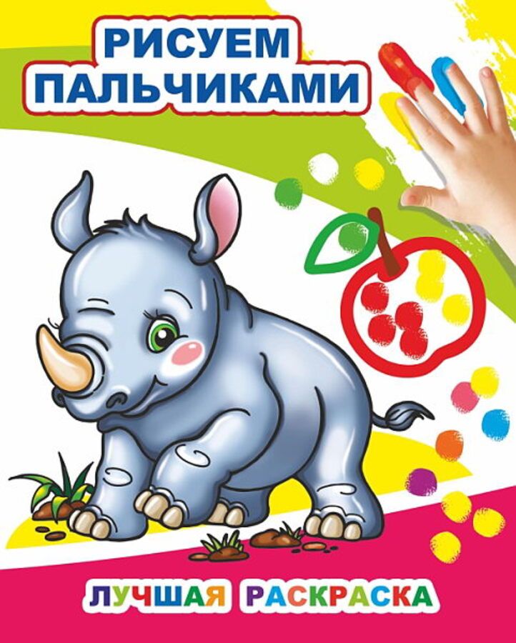 Раскраски "Рисуем ПАЛЬЧИКАМИ", формата 20х25 см. Картонная мелованная обложка, 8 страниц на офсете с ОБРАЗЦАМИ для раскрашивания, 7 картинок для раскрашивания