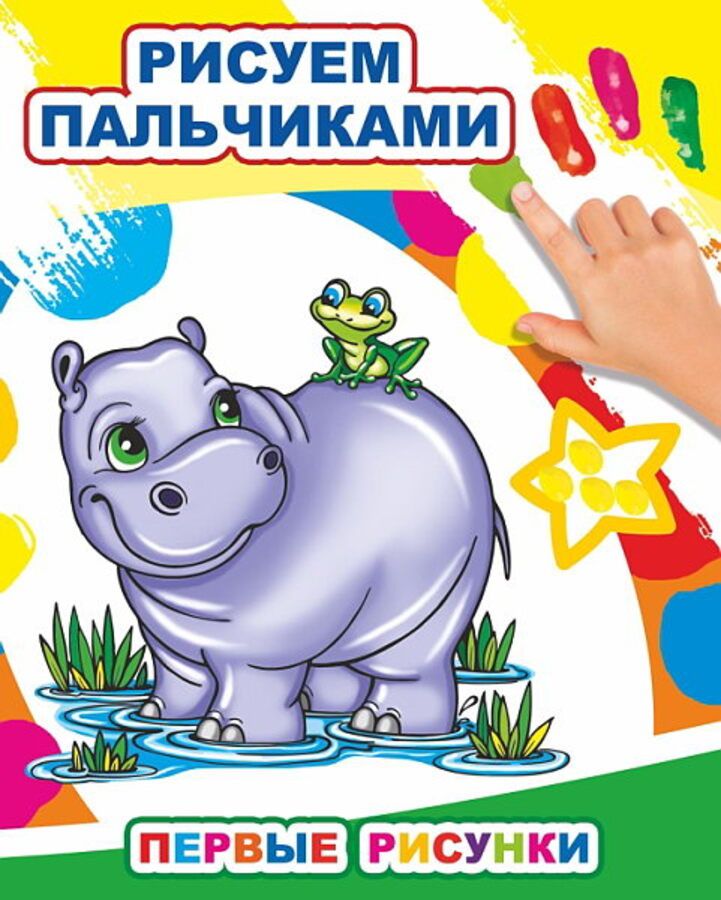 Раскраски "Рисуем ПАЛЬЧИКАМИ", формата 20х25 см. Картонная мелованная обложка, 8 страниц на офсете с ОБРАЗЦАМИ для раскрашивания, 7 картинок для раскрашивания