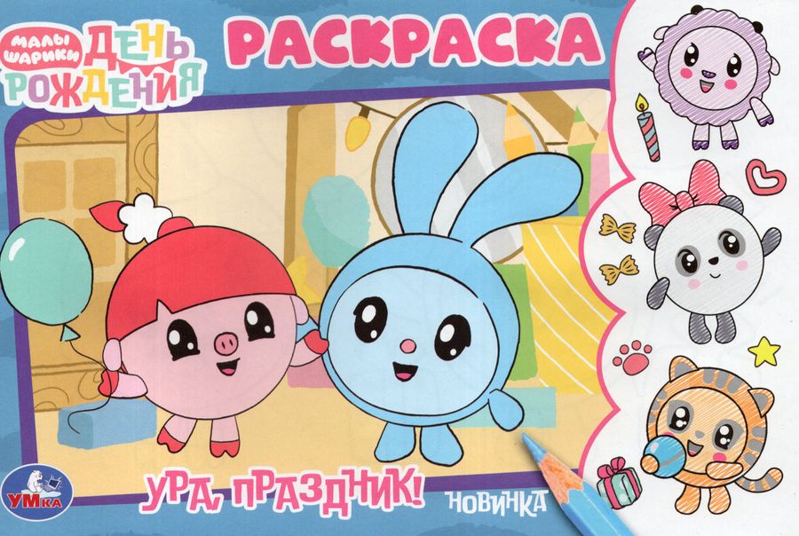 Раскраска. Ура, праздник! День рождения. Малышарики | Автор не указан