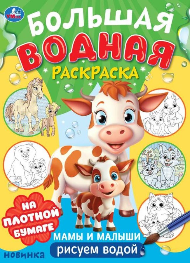 Большая водная раскраска «Мамы и малыши» из серии «Рисуем водой» ТМ «УМка» обязательно понравится маленькому художнику: - на плотной бумаге - милые персонажи - интересные комментарии к рисункам - нужна только кисть и вода Водная раскраска скрасит досуг малыша и поможет раскрыть ему творческий потенциал. Для раскрашивания не понадобятся краски, карандаши или фломастеры - достаточно просто провести по рисунку мокрой кисточкой, чтобы он стал красочным и ярким. Крупные иллюстрации выполнены на плотной бумаге, что сделает процесс раскрашивания более удобным. Игровые занятия с водной раскраской ТМ «УМка» развивают: - мелкую моторику - сенсорное развитие - творческое мышление - внимание Объём: 16 стр. Формат: 235 х 325 мм. Материал: офсетная бумага. Рекомендовано детям старшего дошкольного возраста.