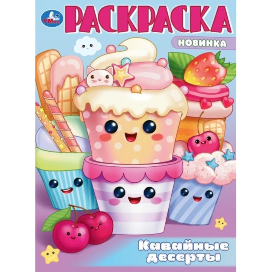 Раскраска «Кавайные десерты» ТМ «УМка» - отличный подарок для юных художников: - чёткий контур картинок для раскрашивания - короткие комментарии к рисункам на каждой странице - интересные и разнообразные иллюстрации - милые персонажи Эта увлекательная раскраска с забавными героями в виде разных вкусняшек непременно понравится вашему ребёнку. В ней он найдёт интересные картинки с чёткими контурами и сюжетными текстами к ним. Благодаря удобному формату раскраску можно взять с собой в путешествие. Игровые занятия с раскраской ТМ «УМка» способствуют развитию: - моторики - внимания - творческого мышления - усидчивости - визуального восприятия Объём: 16 стр. Формат: 214 х 290 мм (А4). Материал: офсетная бумага. Рекомендовано детям старшего дошкольного возраста.