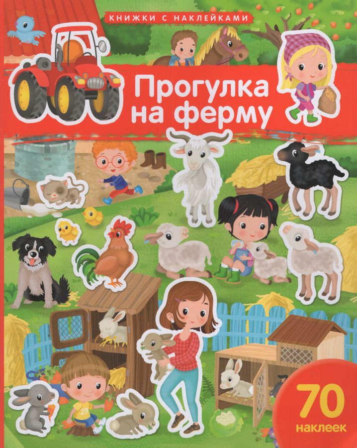 С помощью этой книжки ребёнок узнает много интересного о животных и растениях фермы. Выполняя игровые задания, он будет искать отличия в рисунках, проходить по запутанным лабиринтам, дорисовывать и раскрашивать картинки. Книга содержит 70 наклеек. На специальном развороте их можно расположить где угодно и создать свою неповторимую картину. Книжку удобно брать в дорогу или на отдых. Адресовано детям 4-6 лет.