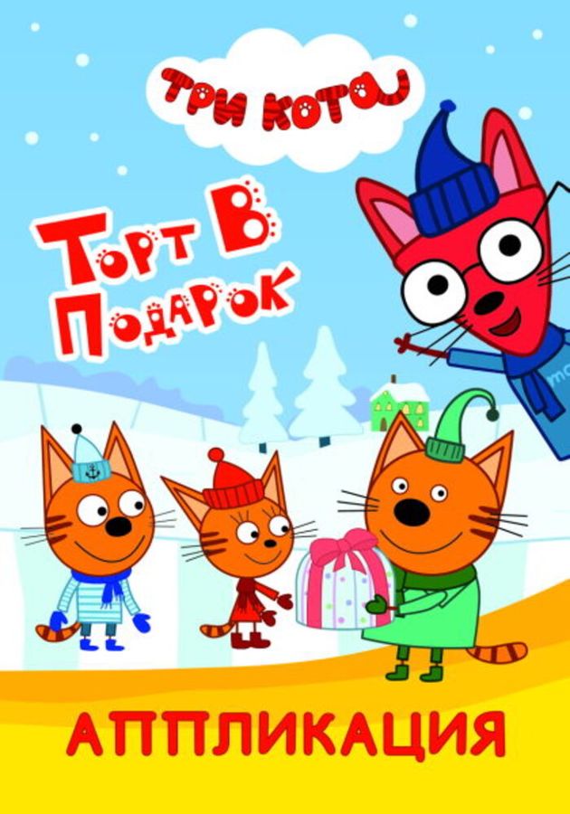 Книга-АППЛИКАЦИЯ в мягкой обложке, 14 х 20 см, 14 стр., 4 картинки-аппликации с героями м/ф "Три кота". Части рисунка нужно вырезать с одних страниц и приклеить на контур на специальных страницах.