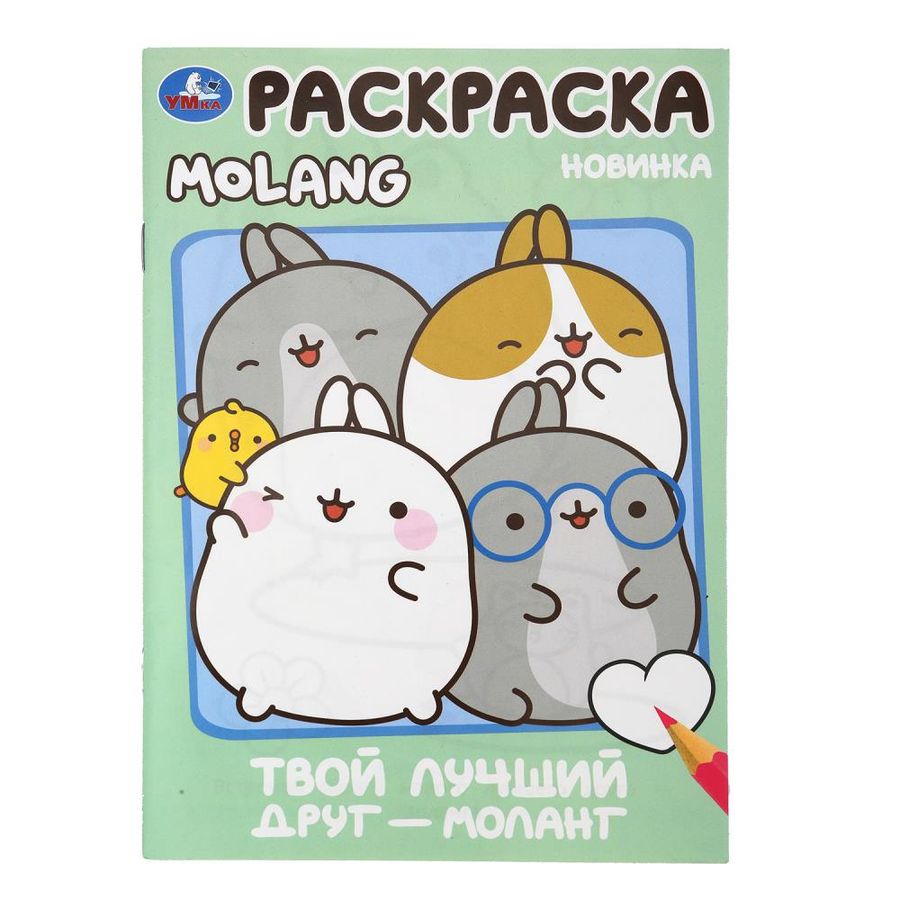 Раскраска « Molang. Твой лучший друг — Моланг» ТМ «УМка» - отличный подарок для юных художников: - картинки для раскрашивания тщательно прорисованы - короткие комментарии к рисункам на каждой странице - милые персонажи - удобный небольшой формат Эта увлекательная раскраска о добродушном кролике Моланге, его лучшем друге цыплёнке Пиу-Пиу и других наимилейших зверушках непременно понравится вашему ребёнку. В ней он найдёт интересные картинки с чёткими контурами и сюжетными текстами к ним. Благодаря компактному формату раскраску удобно брать с собой в дорогу. Игровые занятия с раскраской ТМ «УМка» помогают потренировать руку к письму и способствуют развитию: - моторики - внимания - творческого мышления - усидчивости Объём: 16 стр. Формат: 145 х 210 мм (А5). Материал: бумага офсетная. Рекомендовано детям старшего дошкольного возраста.