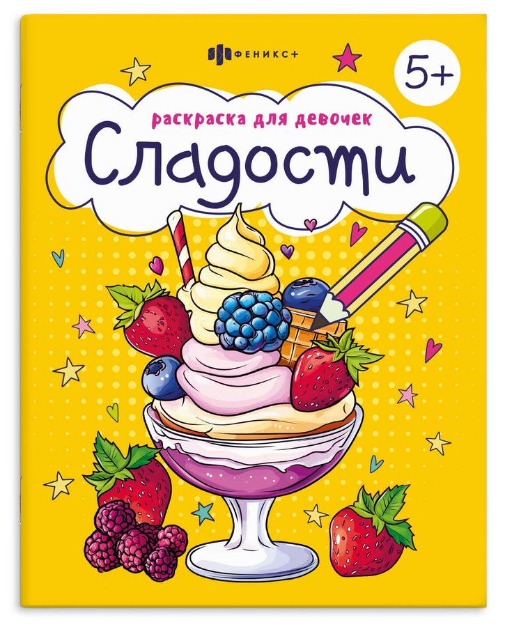Юные художники смогут раскрасить многослойные торты, пудинги, молочные коктейли, ванильные булочки, шарики мороженого, пончики и леденцы. Погрузите ребенка в мир любимых сладостей!