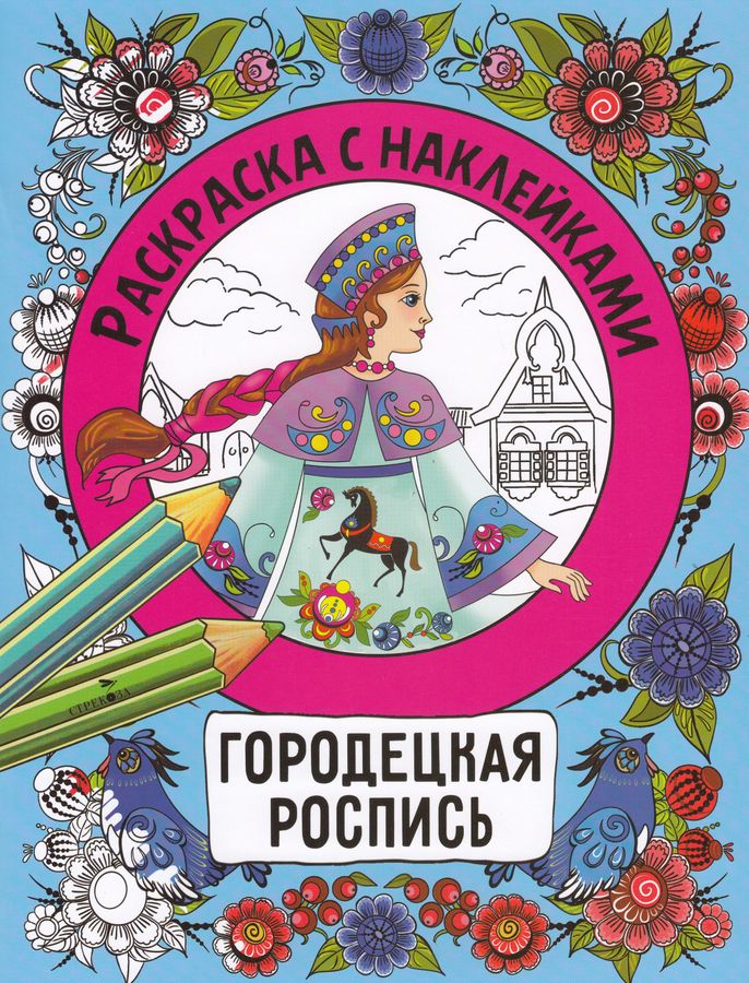 Раскраска с наклейками. Росписи. Городецкая роспись | Терентьева Н.