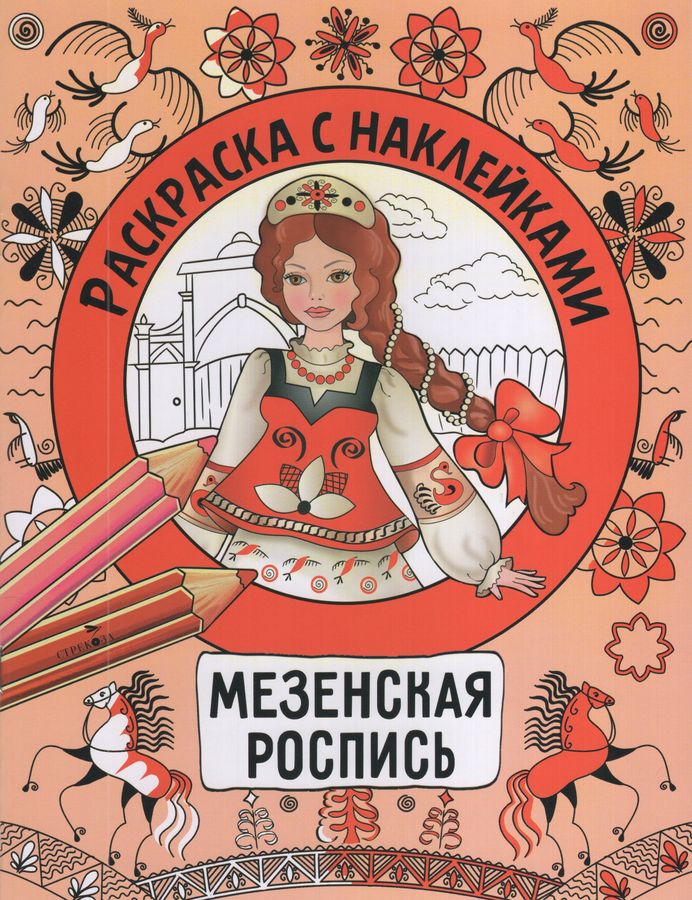 Раскраска с наклейками. Росписи. Мезенская роспись | Терентьева Н.