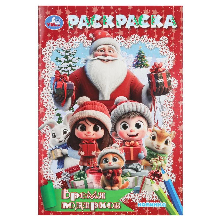 Раскраска «Время подарков» ТМ «УМка» – отличный подарок для юных художников: - картинки для раскрашивания тщательно прорисованы - короткие комментарии к рисункам на каждой странице - удобный небольшой формат Эта увлекательная раскраска с милыми новогодними персонажами непременно понравится вашему ребёнку. В ней он найдёт интересные картинки с чёткими контурами и сюжетными текстами к ним. Благодаря компактному размеру раскраску удобно брать с собой в дорогу. Игровые занятия с раскраской ТМ «УМка» помогают потренировать руку к письму и способствуют развитию: - моторики - внимания - творческого мышления - усидчивости Объём: 16 стр. Формат: 145 х 210 мм (А5). Материал: офсетная бумага. Рекомендовано детям старшего дошкольного возраста.