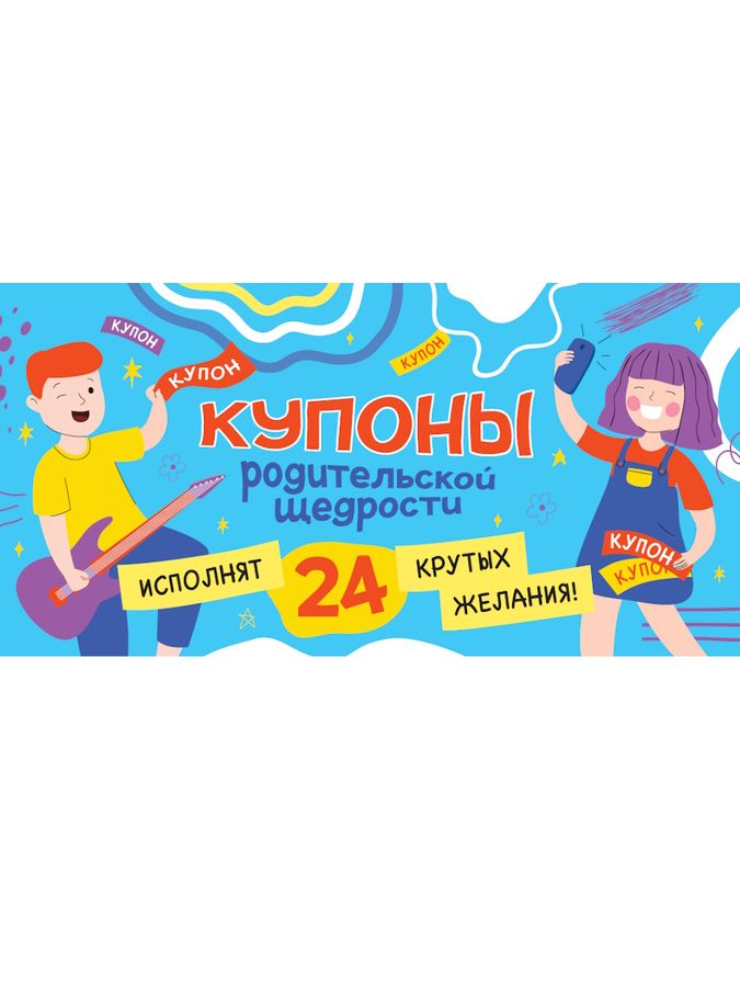Подарок, который порадует любого первоклассника, дошкольника или школьника — это купоны родительской щедрости! В этой чековой книжке из 24 купонов уже есть приятные сюрпризы: купон на поход в любимое кафе, купон на ночёвку у друзей, купон на дополнительный час за компьютером и другие. Оставшиеся купоны можно заполнить самостоятельно или дать возможность ребёнку придумать свои желания. Как работает брошюра: ребёнок выбирает желание из книжки, аккуратно отрезает купон по пунктиру, отдаёт родителю, чтобы тот исполнил написанное пожелание. Такая брошюра станет отличным дополнением к любому подарку.
