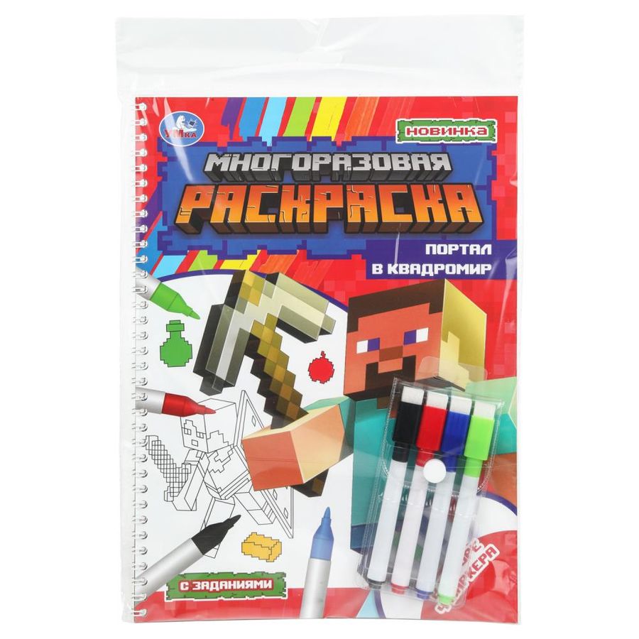 Многоразовая раскраска с заданиями «Портал в квадромир» ТМ «УМка» станет прекрасным подарком для маленького художника: - многоразовые глянцевые страницы - 4 цветных стираемых маркера с ластиком на крышке в комплекте - интересные задания на каждой странице - любимые персонажи - популярная тематика - удобный формат на скрепке На страницах этой занимательной раскраски ребёнка ждёт встреча с отважными героями виртуального квадратного мира. Страницы в книжке – волшебные: раскрашиваемые картинки многоразовые, их можно стирать и творить заново! Для этого в комплекте предусмотрено 4 разноцветных маркера, но можно использовать и свои дополнительные цветные маркеры на водной основе. Кроме того, в раскраске представлены увлекательные задания, которые точно не дадут заскучать маленькому любознайке. Игровые занятия с раскраской ТМ «УМка» способствуют развитию: - фантазии - мелкой моторики - воображения - творческого мышления - усидчивости Объём: 16 стр. Формат: 210 х 290 мм. Материал: мелованная бумага, термоусадочная плёнка, пластик. Рекомендовано детям старшего дошкольного возраста.