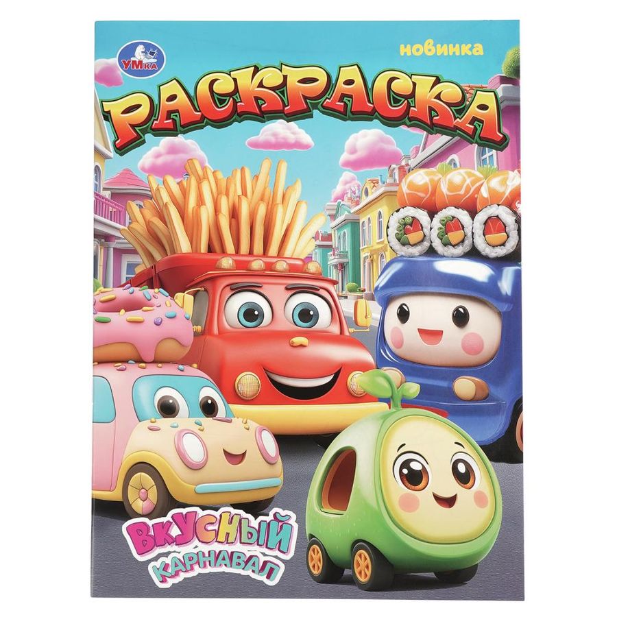 Раскраска «Вкусный карнавал» ТМ «УМка» – отличный подарок для юных художников: - картинки для раскрашивания тщательно прорисованы - короткие комментарии к рисункам на каждой странице - оригинальные персонажи - удобный формат Эта увлекательная раскраска с забавными героями-машинками в виде еды непременно понравится вашему ребёнку. В ней он найдёт интересные картинки с чёткими контурами и сюжетными текстами к ним. Данное издание станет отличным вариантом, чтобы взять его с собой в путешествие и скоротать время в дороге за раскрашиванием. Игровые занятия с раскраской ТМ «УМка» помогают потренировать руку к письму и способствуют развитию: - моторики - внимания - творческого мышления - усидчивости Объём: 16 стр. Формат: 214 х 290 мм (А4). Материал: офсетная бумага. Рекомендовано детям старшего дошкольного возраста.
