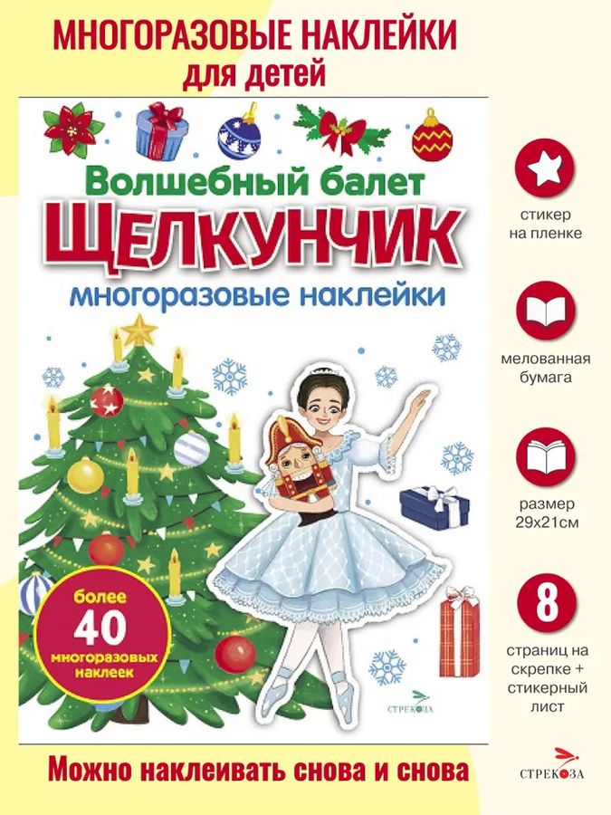 В этой книжке волшебная сказка про Щелкунчика оживёт на сцене театра. Приглашаем тебя стать участником балета. Приклеивай героев и создавай своё представление. С нашими многоразовыми наклейками это так интересно! Автор-составитель М. Калугина Художник М. Халиуллина Для детей до трех лет.