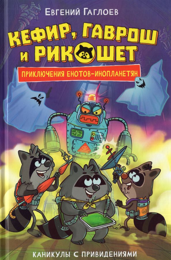 Новая книга в серии приключенческого фэнтези для детей «Кефир, Гаврош и Рикошет» от известного современного писателя Евгения Гаглоева! Иллюстрации в стиле популярного мультсериала «Гравити Фолз», запутанные детективные расследования, юмор и еноты-инопланетяне в главной роли! В горном отеле «Триумф» завелись жуткие призраки. Гостей, которые съезжаются туда, чтобы отдохнуть и покататься на лыжах, ждут ужасные потрясения. Но среди гостей – Илона, Егор и тройка безбашенных енотов-инопланетян, а также зловредная девчонка Лиза и её коварная кошка Матильда. Так что ещё неизвестно, кому сильнее не повезет: гостям или призракам… Книга «Каникулы с привидениями» – это прекрасный подарок мальчику и девочке на день рождения. Динамичный сюжет, озорные приключения, загадки, путешествия, современные красочные иллюстрации Сергея Эйтвида, похожие на комикс, – все, что нужно, чтобы забыть о скуке, и не выпускать книгу из рук. Осторожно: любовь к чтению неизбежна! Евгений Гаглоев – признанный мастер современной детской и подростковой литературы в жанре фэнтези и приключения, автор циклов-бестселлеров «Зерцалия», «Пандемониум» и «Охотники за мифами», обладатель медали имени Н.В. Гоголя, победитель многих конкурсов детской книги.
