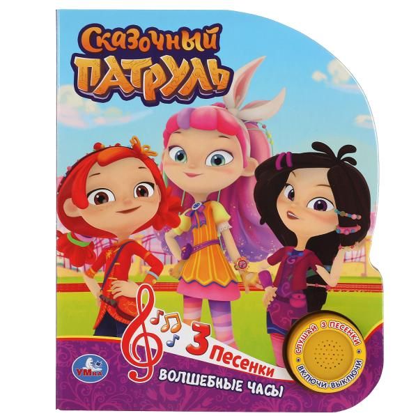 Музыкальная книга «Сказочный патруль. Волшебные часы» ТМ «УМка» - отличный подарок для маленьких поклонников мультсериала про юных волшебниц: - 1 звуковая кнопка; - 3 песенки из м/ф (фрагмент): «Город Мышкин», «Сказочный патруль», «Звезда»; - увлекательный сюжет; - яркие иллюстрации; - фигурная вырубка. Ребёнок с удовольствием будет листать плотные страницы, рассматривать красочные картинки, читать вместе с родителями про приключения любимых персонажей, а также нажимать на кнопку и слушать весёлые песенки. Малыш легко освоит включение звука: по нажатию на кнопку включится первая песенка, при втором нажатии выключится, в 3-ий раз - заиграет следующая и т.д. Благодаря компактному формату книгу удобно взять с собой в дорогу. Музыкальная книга ТМ «УМка» развивает: - слуховое восприятие; - фантазию; - образное мышление; - память.