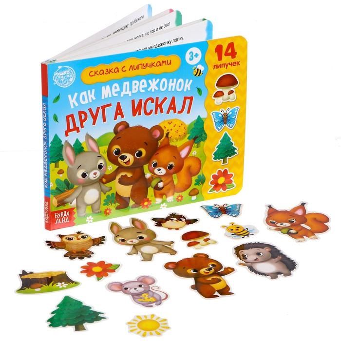Обучающая книга с липучками направлена на расширение кругозора. Добрая сказка понравится ребёнку, ведь он сможет оживить историю, ведь героев на липучках можно перемещать со страницы на страницу. Благодаря этой сказке малыш узнает, что такое дружба и как важно иметь рядом настоящих друзей. Как играть с яркими липучками? Необходимо самостоятельно приклеить липучки в книгу и на карточки. Мягкие липучки клеятся в книгу, а твёрдые — на героев сказки. Если случайно потеряется пара липучек, не расстраивайтесь, ведь в комплекте есть запасные. Книга оснащена специальным конвертом для хранения липучек. Для того чтобы обучение было продуктивнее, рекомендуем взрослым заниматься вместе с малышом. Книга предназначена для детей от 3 лет. Комплектация Картонная книга. 14 фигурных карточек с героями сказки. Набор твёрдых и мягких липучек на клеевой основе.