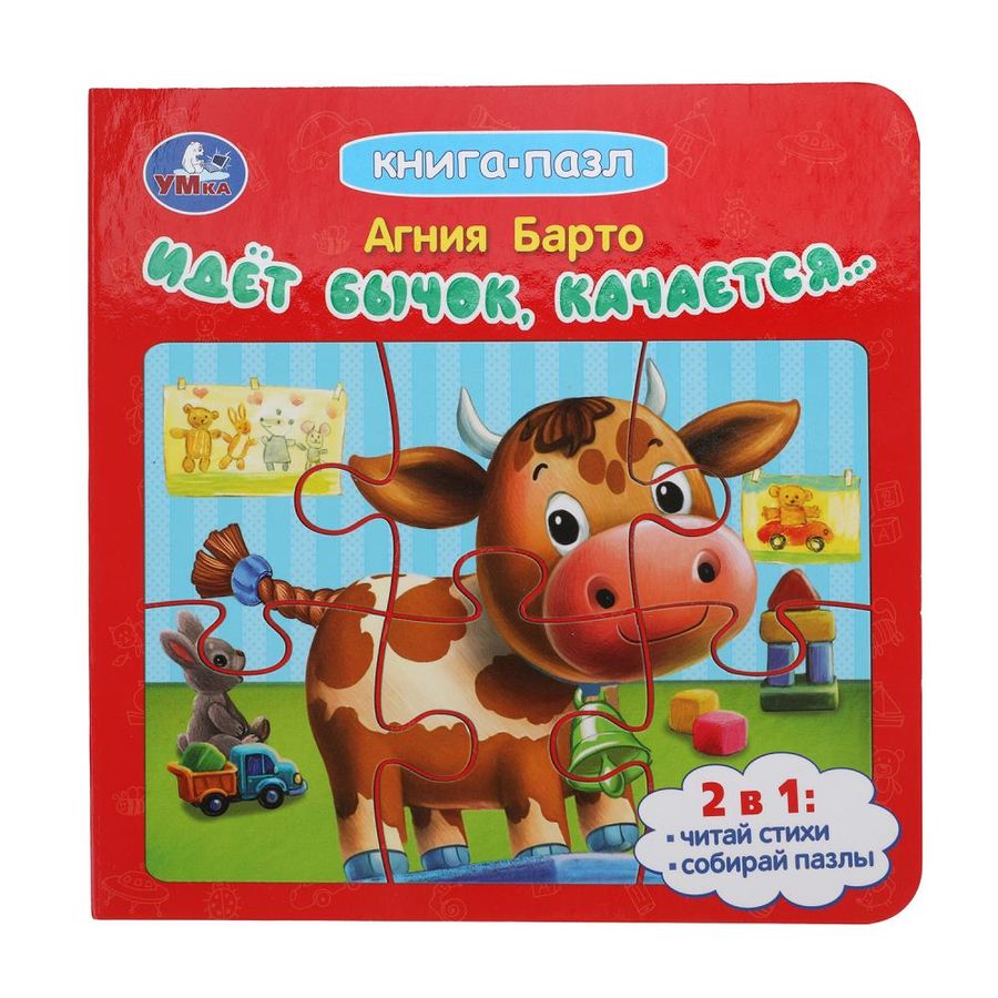 Книга-пазл 2 в 1 «А. Барто. Идёт бычок, качается...» ТМ «УМка» станет прекрасным подарком для ребёнка: - формат 2 в 1: читаем стихи и собираем пазлы - 5 пазлов из 6 деталей - красочные иллюстрации - плотные страницы Данная книга выполняет сразу 2 функции: это и книга для чтения, и игра в пазлы. На каждом развороте малыша ждёт интересный стих известной детской поэтессы Агнии Барто, а также яркий пазл с изображением персонажей её произведений. Книжка изготовлена из плотного картона, поэтому мамы могут не опасаться, что ребёнок порвёт странички. Благодаря удобному формату книгу можно взять с собой в дорогу. Чтение книги-пазла ТМ «УМка» и игра с ней развивают: - образное мышление - мелкую моторику - логическое мышление - фантазию - внимание Объём: 10 стр. Формат: 160 х 160 мм. Материал: картон. Рекомендовано детям младшего дошкольного возраста.